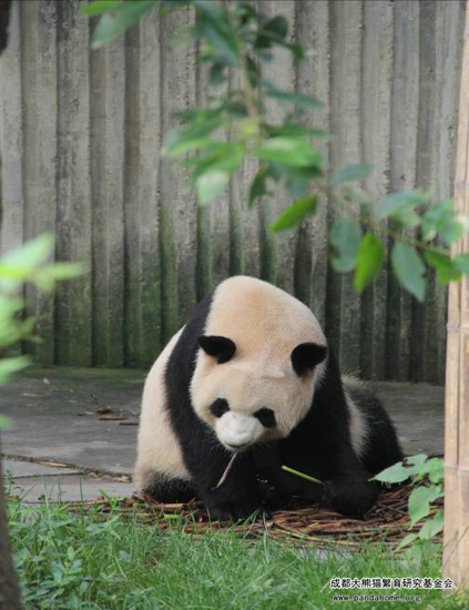 Comments: The pose shows how shy this panda is, and it’s a photogenic pose. But due to the need to use one hand to get food, it can only use another hand to support its body. So it looks a little toilsome.