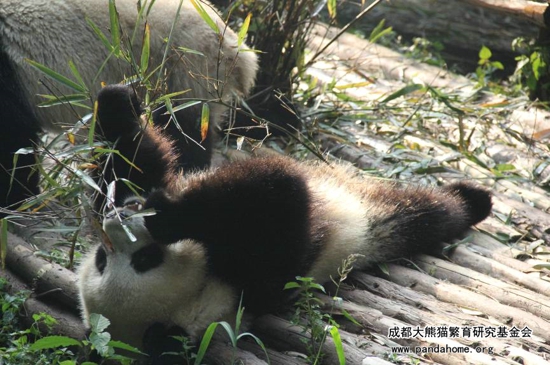 Thus , many people think that giant pandas are eating and sleeping all day long. In captivity, they don’t have any natural predators, so usually they like to choose a comfortable pose to enjoy their lifeleisurely.