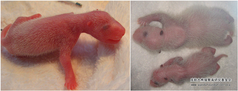 Why panda cubsare so tiny? There are twomain reasons. One is that the gestation period of mother panda varies from 83-200 days, and 144+/-20 days on average. The second reason is embryos of giantpandas have the physiological phenomenon of “Delayed Implantation”. The real developing time afterembryos implanted is only around 1 monthand a half . This is also the main reason why theweight of newborn cubs is light.
