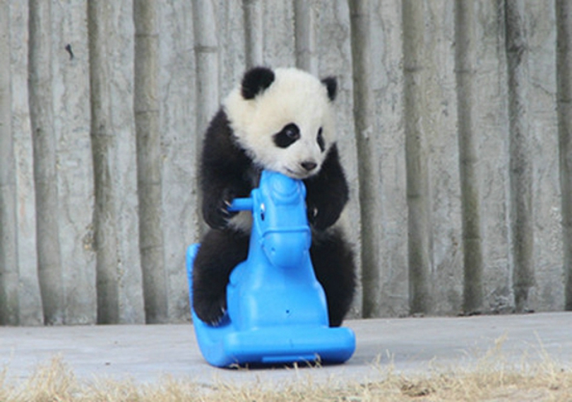 When the panda is about 5 months old, it’s the time to learn and try all the fresh things, such as, climbing trees, playing toys and learning more survival skills. Panda’s movements are not very agile, but they can do it better gradually.