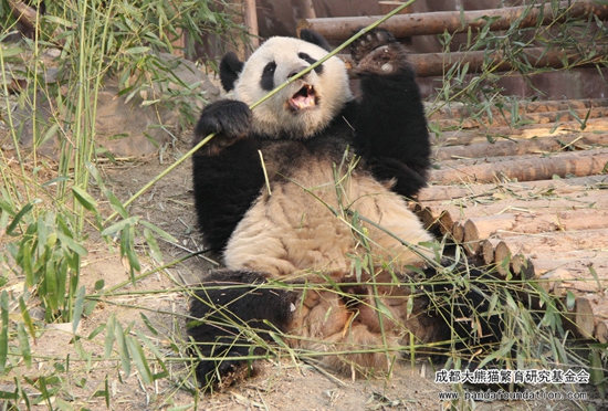 Mei Lan likes this pose most: eating bamboos while lying.