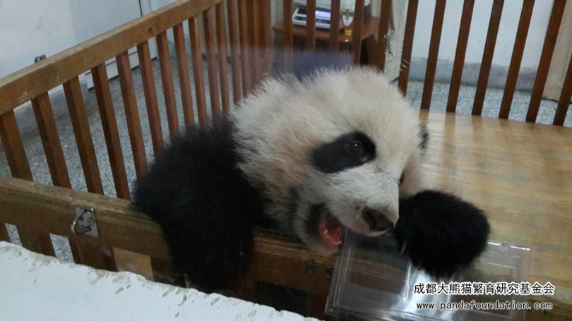 Unlike humans, most giant pandas were born to be with underbite. As Sa Er is growing up, it is found that her teeth are totally different -- she is orthognathous. She also gets a pointed chin. From the side view, Sa Er looks a little like a fox especially in her childhood. For these reasons, she gets her nickname of “the little fox”.
