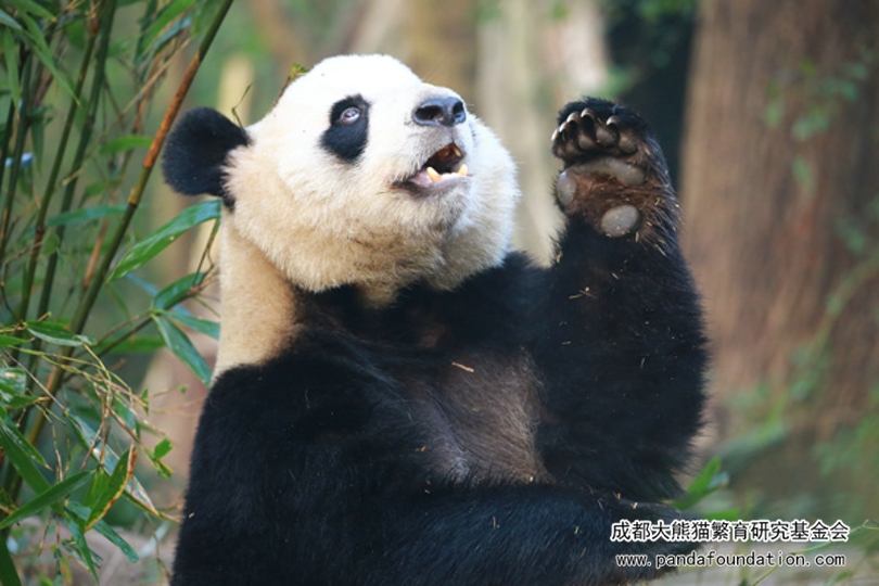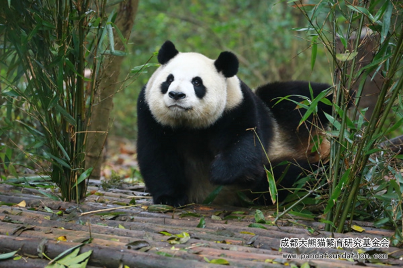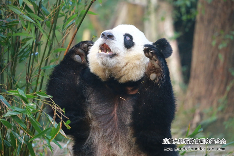 Ya Li--round head, chubby face, fat body, beautiful and elegant appearance. Naturally lively and naught, she likes to take photographs. When facing the camera, she will use the bamboo as props, or face, or look up, or turn back; When walking, she will chose "cat walk"; At rest, she likes to look at the sky, or look left and right, or close her eyes. Whenever a camera is pointed at Ya Li, she is always charming.