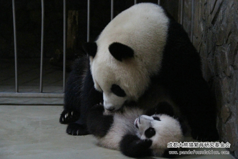 Giant panda mother's love can be like rain and dew to nourish the cubs, but it also can be a landslide to make babies tremble.