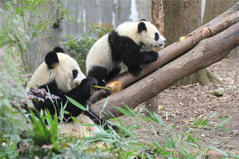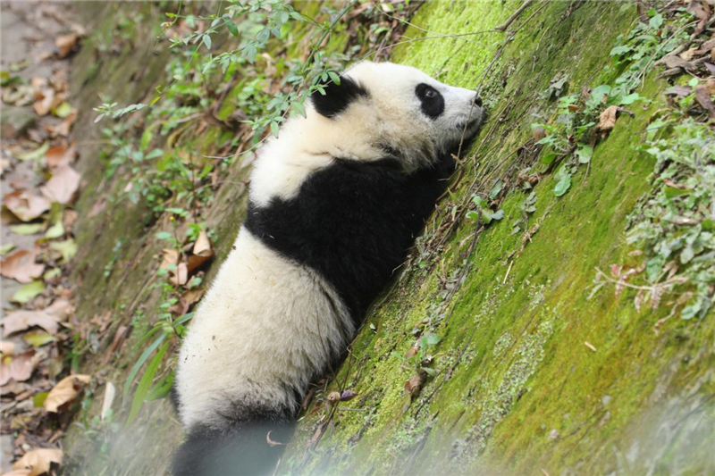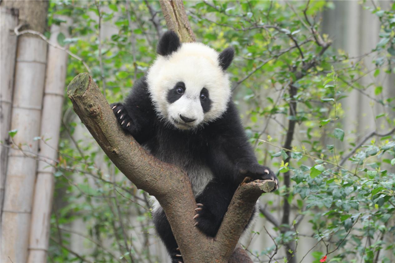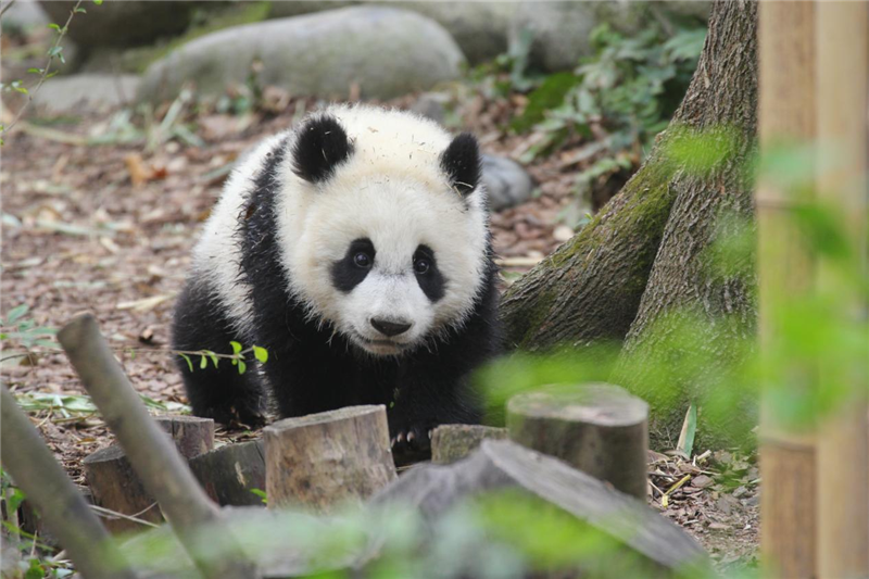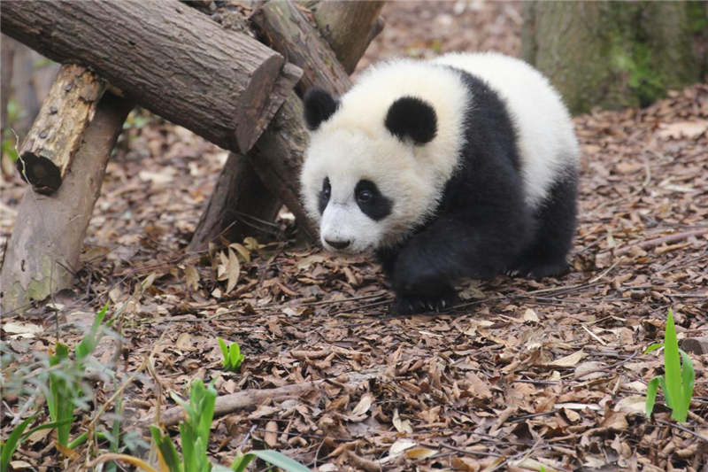 The giant panda Jin Xiao is Zhao Mei 's cub and a new member of the Olympic family of the Panda Base born at the opening of the 32nd Summer Olympic Games. Although Jin Xiao is less than a year old, she is a vibrant Olympic cub. When the warm spring breeze blows through the green Panda Base, Jin Xiao also begins to look for the green in spring.