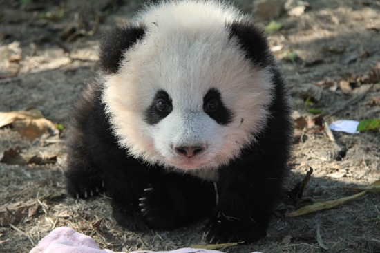 Every giant panda has a pair of very cute ears, round and upright on its head.