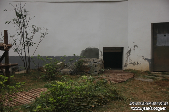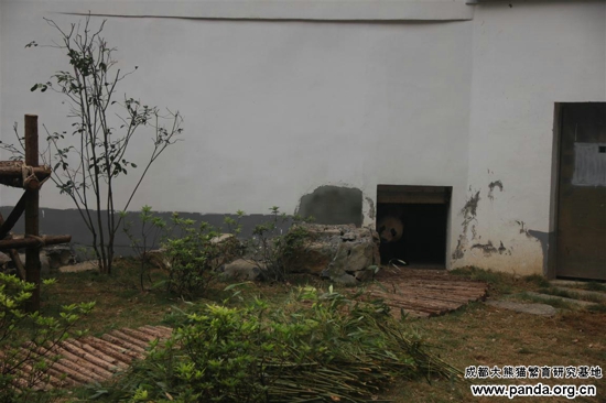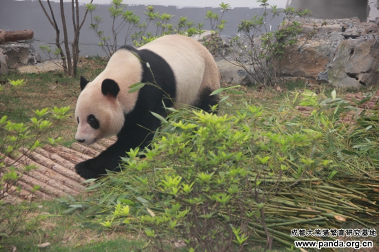 2013年4月8日、今日は空が晴れ渡り、いい天気でした。パンダの明浜は初めて柳州動物園にある運動場にやって来て、探検、縄張り確保、食事、シャワー等を体験しました。