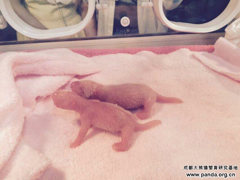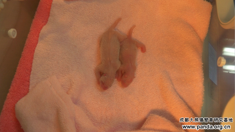 6月22日の朝5時10分ごろ、成都ジャイアントパンダ繁殖研究基地のメスパンダコリンがメスの双子赤ちゃんパンダを無事に産みました。分娩症状があってから出産まで二時間でした。お母さんになったばかりのコリンは母性が強くて、子供を抱こうとするパンダに珍しい行為もあったそうです。双子赤ちゃんパンダの全てが順調で、体重は長女は118グラムで、次女は70グラムで、毎回1ミリリットルのミルクを飲んでいます。
