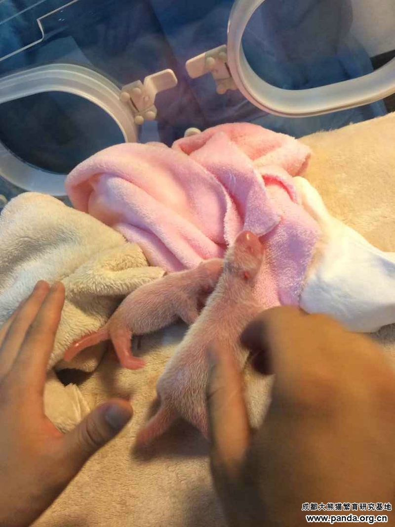 7月26日朝、無事出産したショウヤートより生まれてきたオスの双子が2015年成都ジャイアントパンダ繁殖研究基地での二番目の双子パンダ赤ちゃんです。