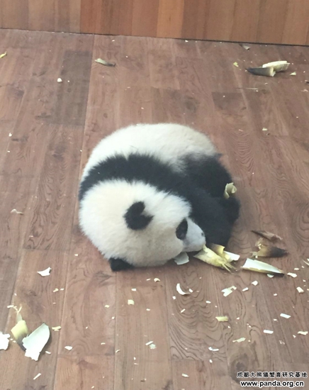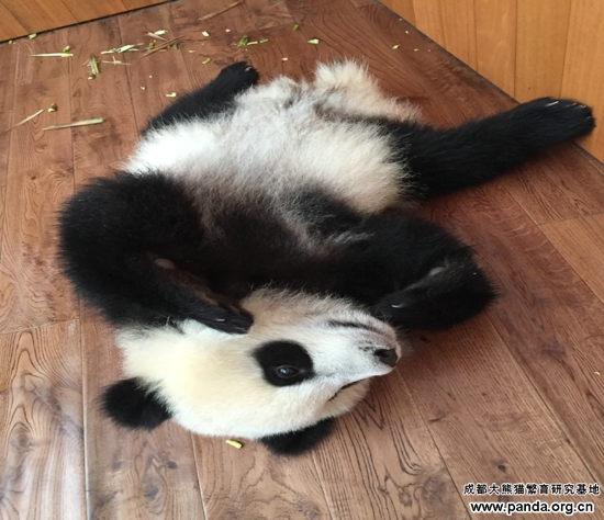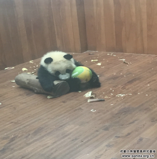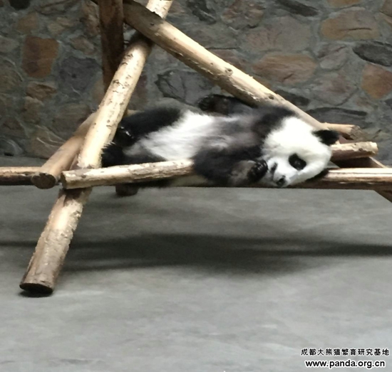 運動場と比べて、室内に木が少ないし、運動のできる空間も限られているですが、何でもできそうなパンダ赤ちゃんにとっては全然問題がないようです。ただ寝ることのような簡単なことであっても、パンダ赤ちゃんにとっては楽しみがたっぷりあるのです。
