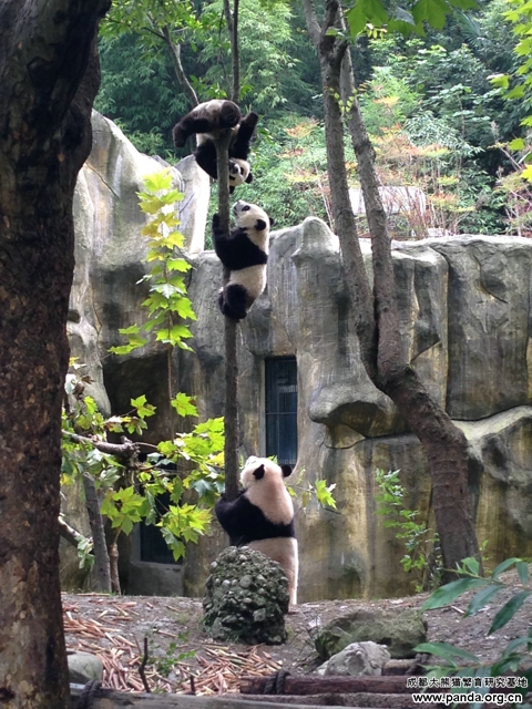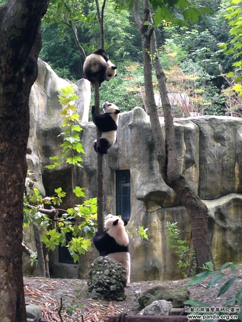 涼しい秋に入ってから、子パンダたちも水遊びをしたり、木登りしたりをし始めるようになりました。その影響を受けたのか、毛毛の子達も活発になりました。