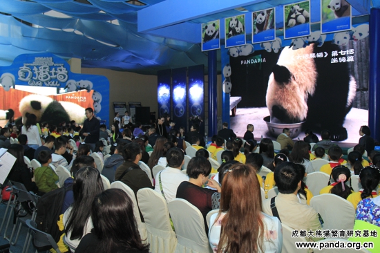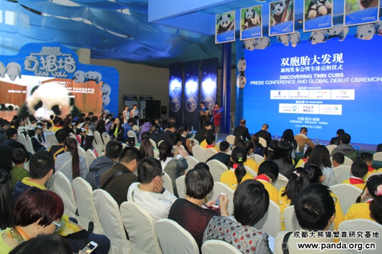 国連開発計画省の国別副主任の何佩德氏(Patrick Haverman)、野生救援組織(WILDAID)の広報マネージャのSteve Blake氏、大自然保護協会(TNC)四川プロジェクトの姜継東主任、四川省林業庁野生保護処の仇剣副処長、成都市林業管理局の羅葉副局長、成都パンダ 基地の張志和主任、Tencentニュスー部の康少見編集長、Pandapiaのブランドディレクターの張雲輝氏、馬辺大風頂自然保護区管理局の立皮吉仁 書記、四川美術学院油絵学部のパンダアーティスト張奇開教授、成都玄門文化創意グループ&カンカン四川の梁良代表取締役、シンクロナイズド・スイミングの ワールドカップ・チャンピオン蒋文文、蒋婷婷姉妹(双子の姉妹)、全国で応募した四組の双子パンダファン、馬辺大風頂自然保護区からの彝族「保護天使」耍 惹新謝さん及び成都パンダ基地のパンダ専門家たち合計60名の方々はパンダの故郷成都に集まり、今までのパンダ保護の業績を祝いながら、「一つの個体群、 二つの基地、三つの中心」というパンダ基地の構想を展望していました。