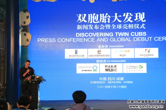 国連成立70周年に当たる2015年10月24日の午前10時、 国連開発計画省(UNDP)、成都パンダ基地、Tencent、Pandapiaが主催し、保護国際(CI)、野生救援組織(WILDAID)、大自然保 護協会(TNC)の協力の元、『「双子の大発見」全世界ジャイアントパンダの保育、プロモーションイベント』と「記者会見及び披露式」が成都パンダ基地で 行われました。