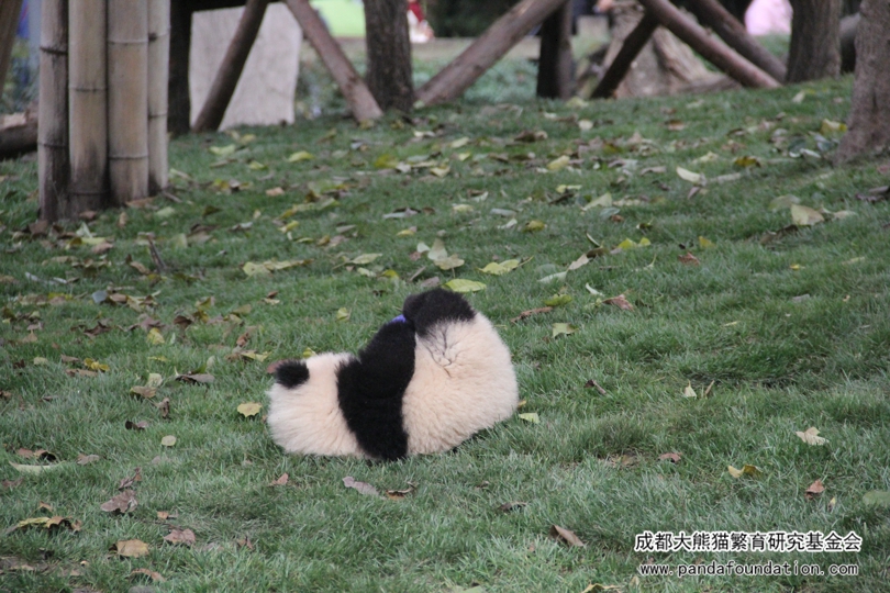 大きい耳と長い足だけではなく、雅豚ちゃんの豚鼻も独特で、まるで黒いごまを盗み食いたのように、とても萌えます。また、この子の首はどんなに引っ張られても見えないぐらい短くて、その首がないような様子は都江堰パンダ谷の奥麗奥ちゃん(雅豚ちゃんの叔父さん)とそっくり。遺伝の影響ってすごいですね!雅豚ちゃんはとても見分けつきやすいですよね、こうやって見分けできない人はいないでしょう!