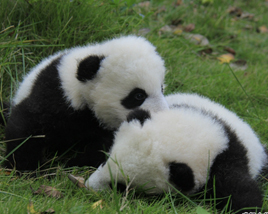 80年以後に生まれた皆さんの大半は一人子だから、「兄弟愛」の意味がはっきり分からないかもしれないが、パンダたちは兄弟愛をしみじみと感じていますよ。 芝生で追い